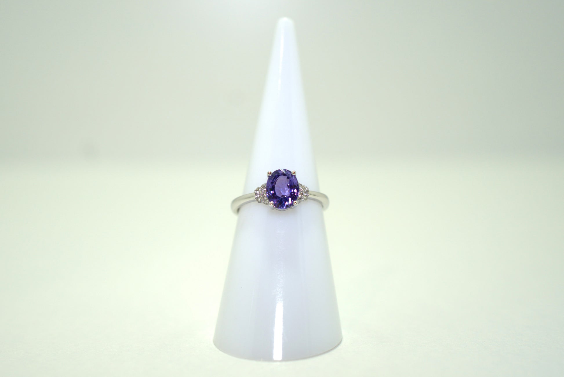 This elegant 18K white gold ring features a stunning 0.93-carat blue sapphire as the center stone, beautifully surrounded by 14 sparkling diamonds. A perfect combination of vibrant color and brilliance, this ring exudes sophistication and timeless elegance.