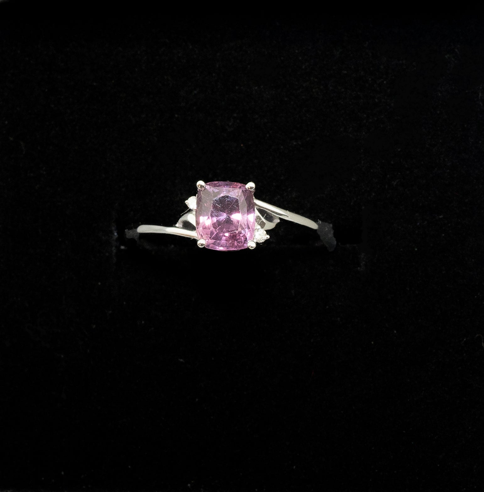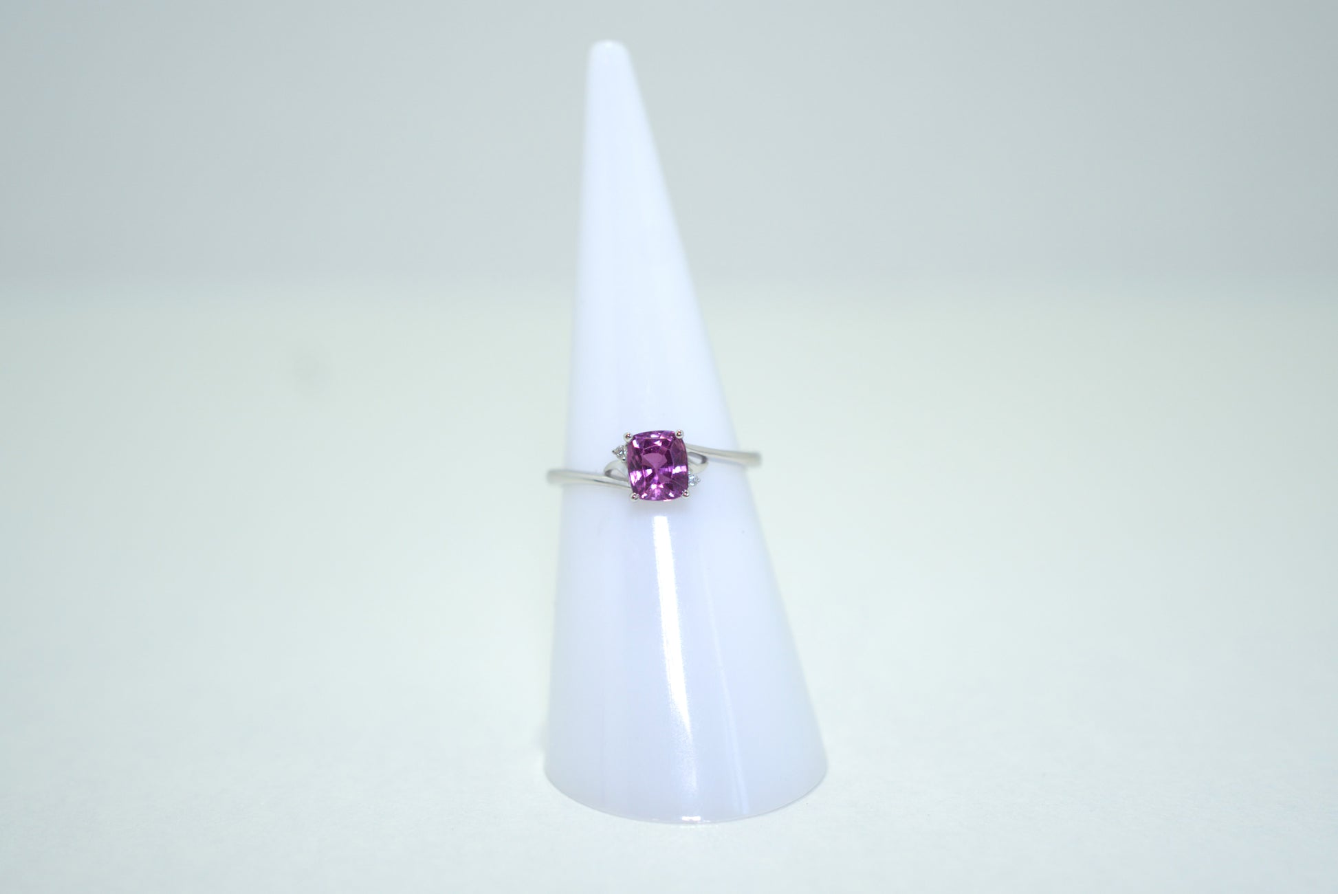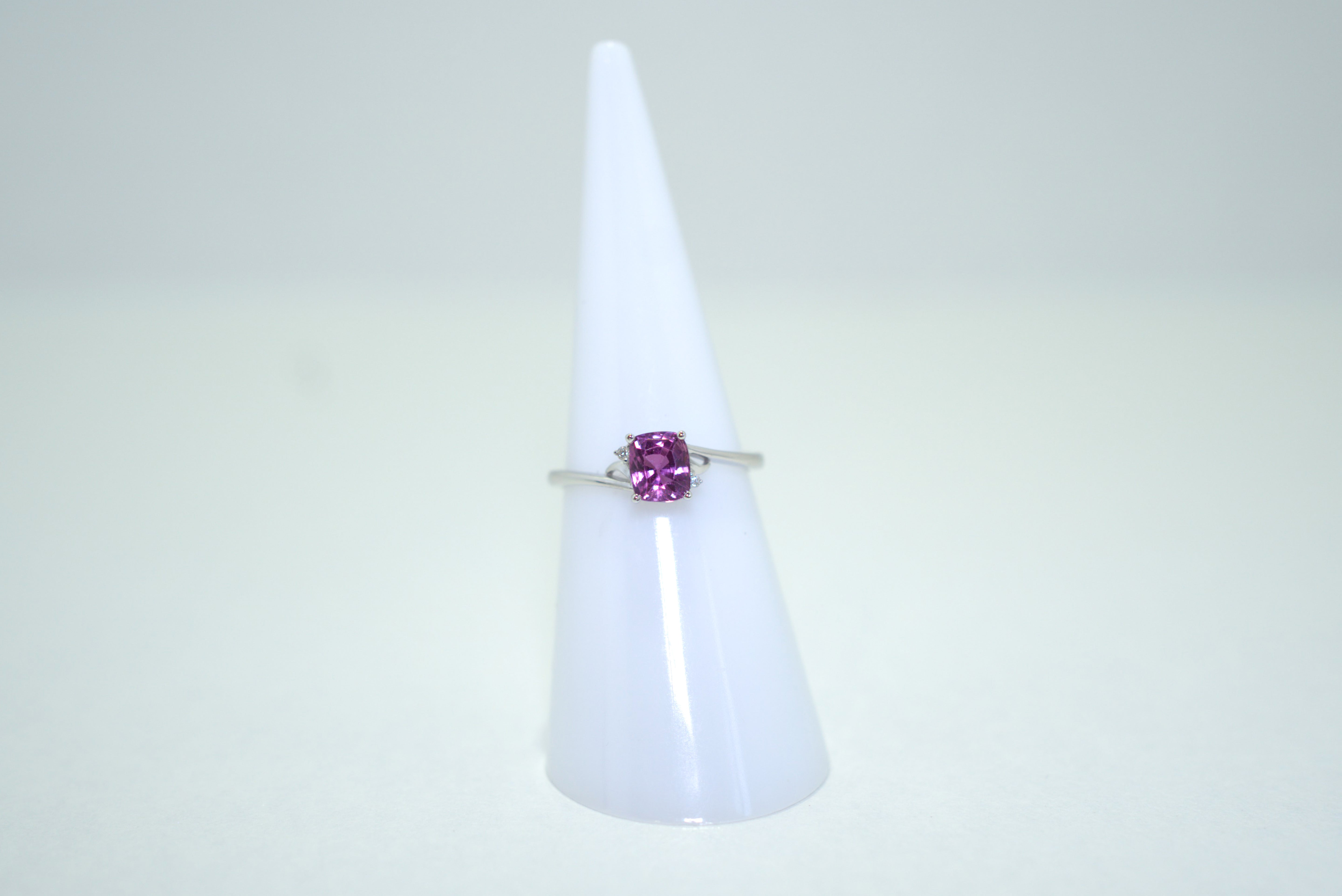 This elegant 18K white gold ring features a stunning 0.8-carat pink sapphire, radiating vibrant color and sophistication. A perfect piece to add a touch of luxury and elegance to any collection.